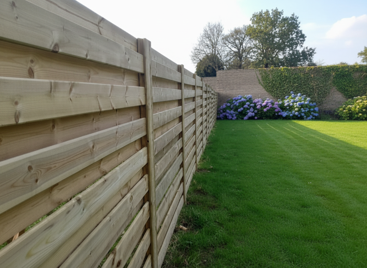 La clôture alternée en bois se distingue par son design moderne et structuré, composé de lames horizontales disposées de manière alternée de chaque côté de la clôture. Cette conception assure une excellente intimité, tout en offrant une finition esthétique soignée des deux faces, idéale pour les limites mitoyennes. Fabriquée en bois de qualité, elle garantit robustesse, durabilité et une intégration harmonieuse dans les jardins et espaces extérieurs contemporains.