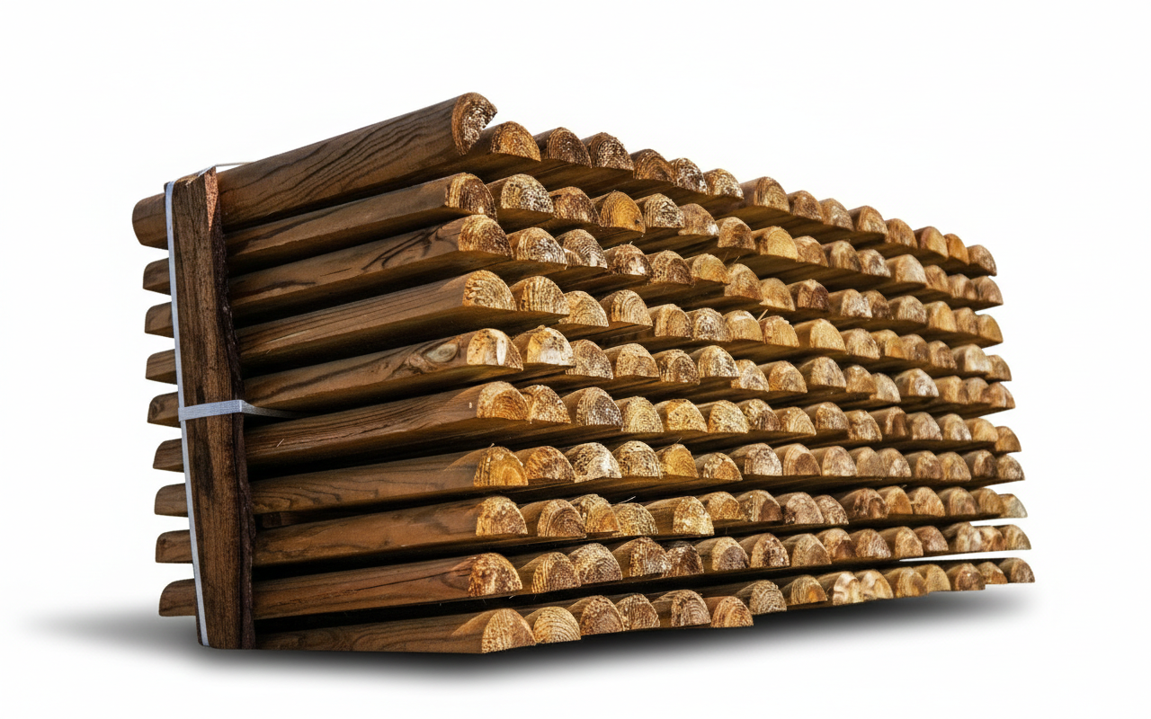 Tuteur en bois autoclave pour bordures de potager, bordures de jardin ou clôtures pour animaux. Grâce à leur traitement classe 4, les piquets en bois, rondins et demi-rondins autoclaves résistent aux attaques extérieures (insectes, champignons, intempéries) et peuvent être placés en contact direct avec le sol.