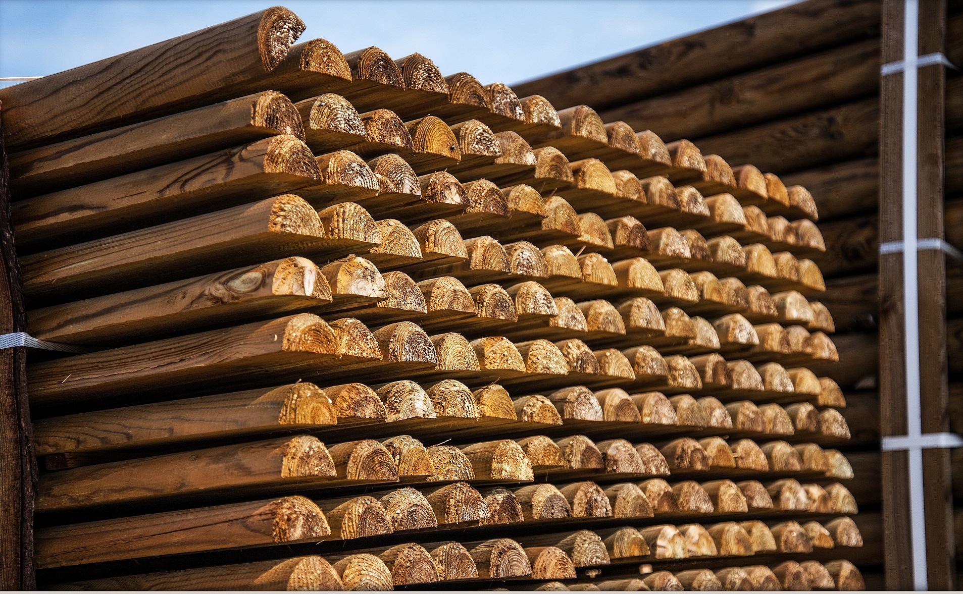 La classe 4 permet de mettre le piquet en contact avec la terre ce que ne permet pas la classe 3. Le traitement en classe 4 coûte beaucoup plus cher que celui de la classe 3, mais la résistance des bois n’est pas comparable… Nos rondins sont conditionnés par colis avec des lattes entre chaque rangée : cet espace ainsi créé permet une répartition homogène de l’imprégnation et garantit une longévité significativement accrue.