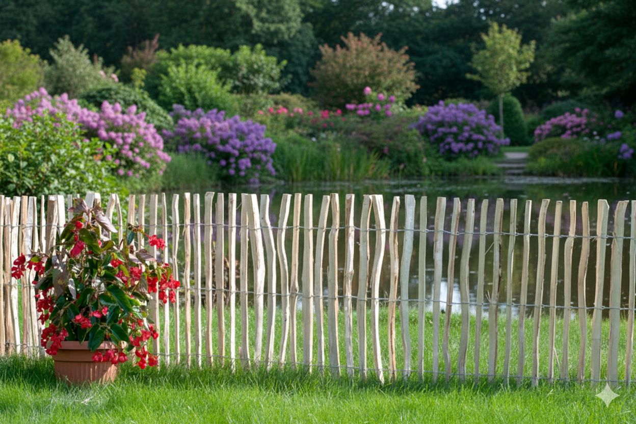 La ganivelle en noisetier est une clôture en bois naturel idéale pour l’aménagement paysager, les jardins, les chemins, les espaces ruraux et les zones protégées. Composée de piquets de noisetier fendus, elle offre une excellente résistance mécanique, une grande flexibilité et une intégration parfaite dans l’environnement naturel. Son assemblage par double fil métallique à chaque lien garantit une bonne stabilité et une longue durée de vie.