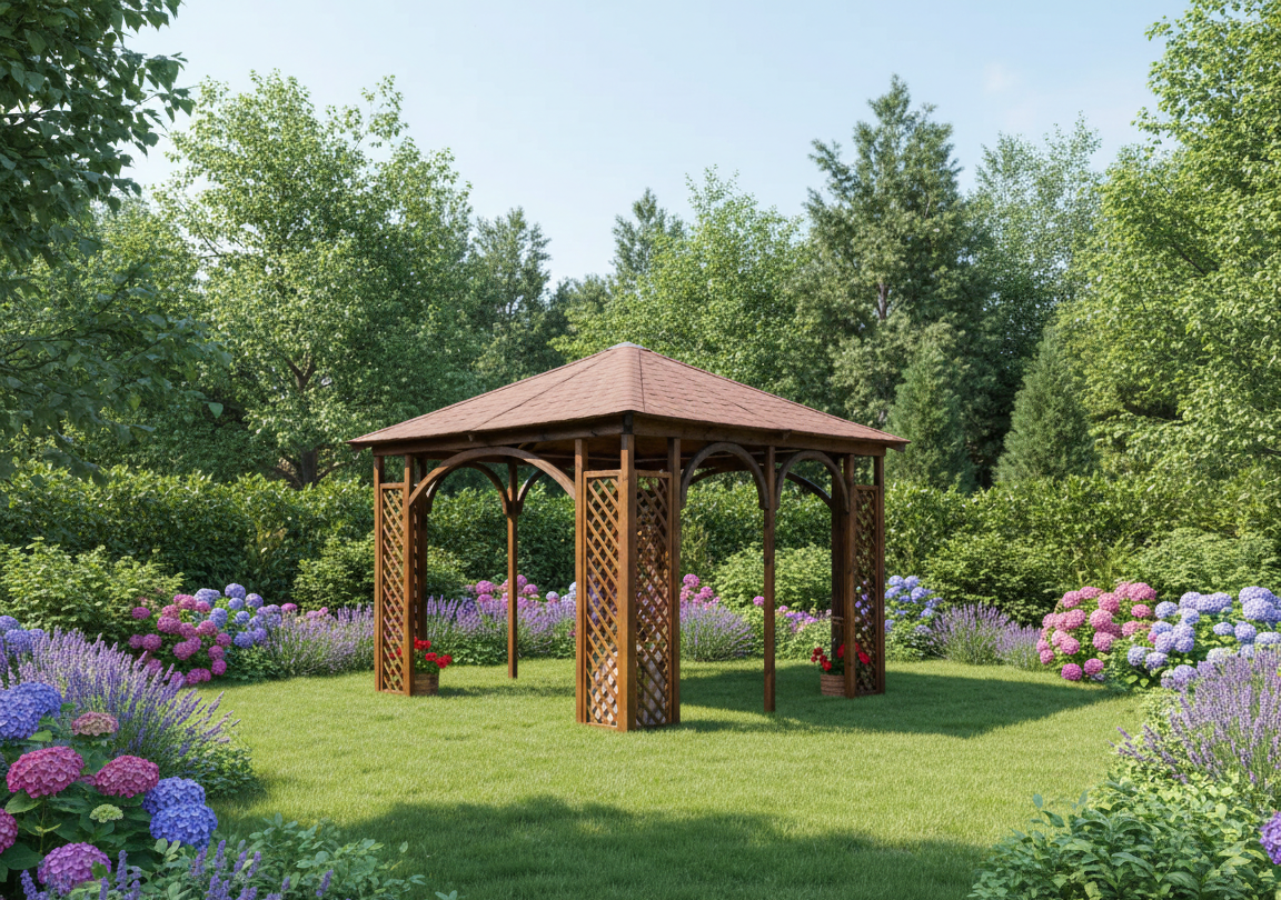 Cette gloriette de jardin carrée est parfaite pour aménager un coin détente, installer un salon de jardin ou créer un espace ombragé pour les repas en plein air. Elle s’intègre harmonieusement dans tous les styles de jardins.