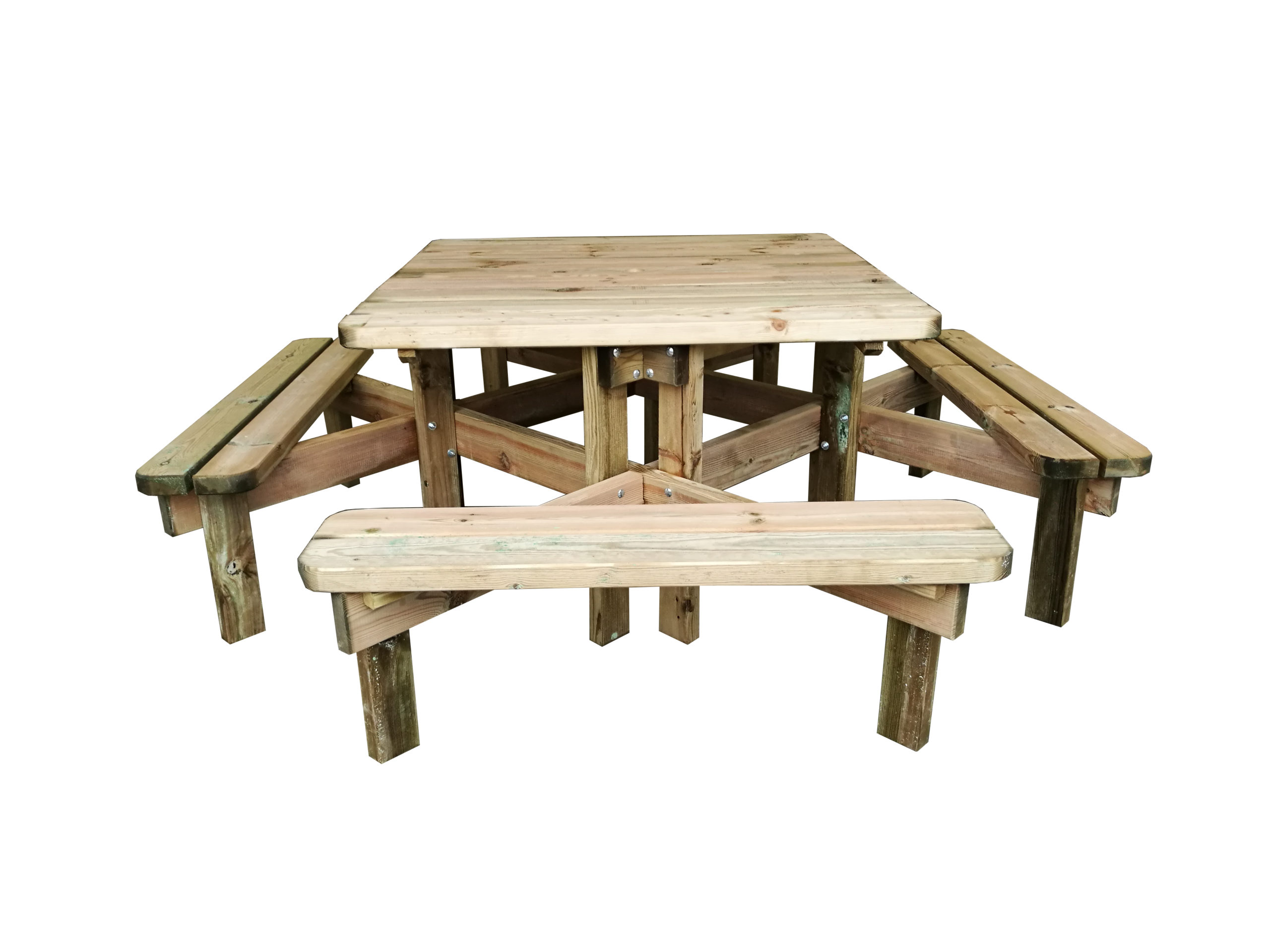 | Table de pique-nique carrée avec 4 bancs rectangulaires | Dim. totales: 210x210xH74 cm |