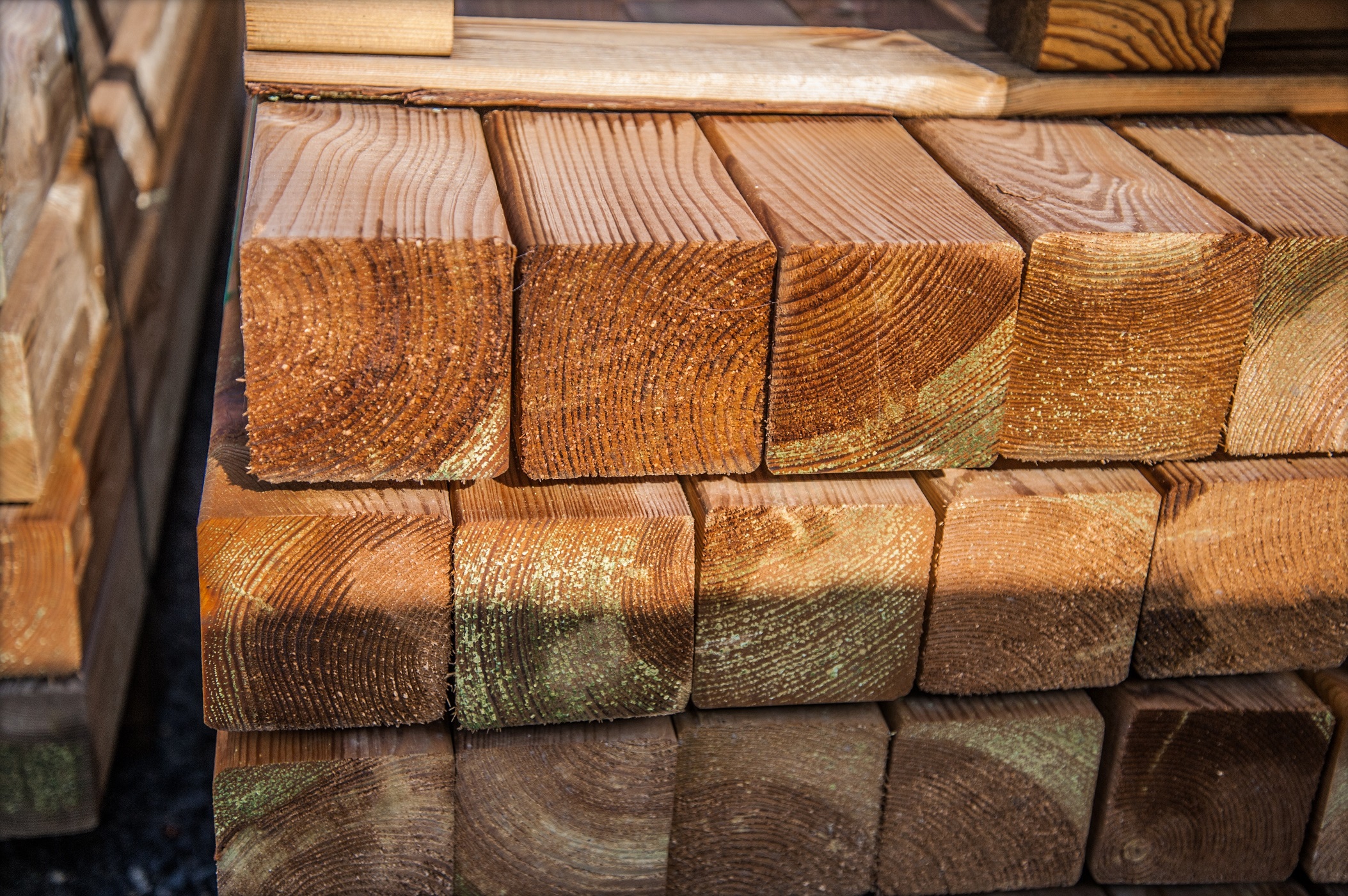Nos poteaux sont conditionnés par colis avec des lattes entre chaque rangée : cet espace ainsi créé permet une répartition homogène de l’imprégnation et garantit une longévité significativement accrue.